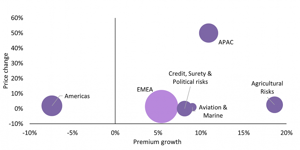 Casualty, however, proved a less attractive class, with reinsurer risk appetite reflecting mixed pricing dynamics, both by class and geography